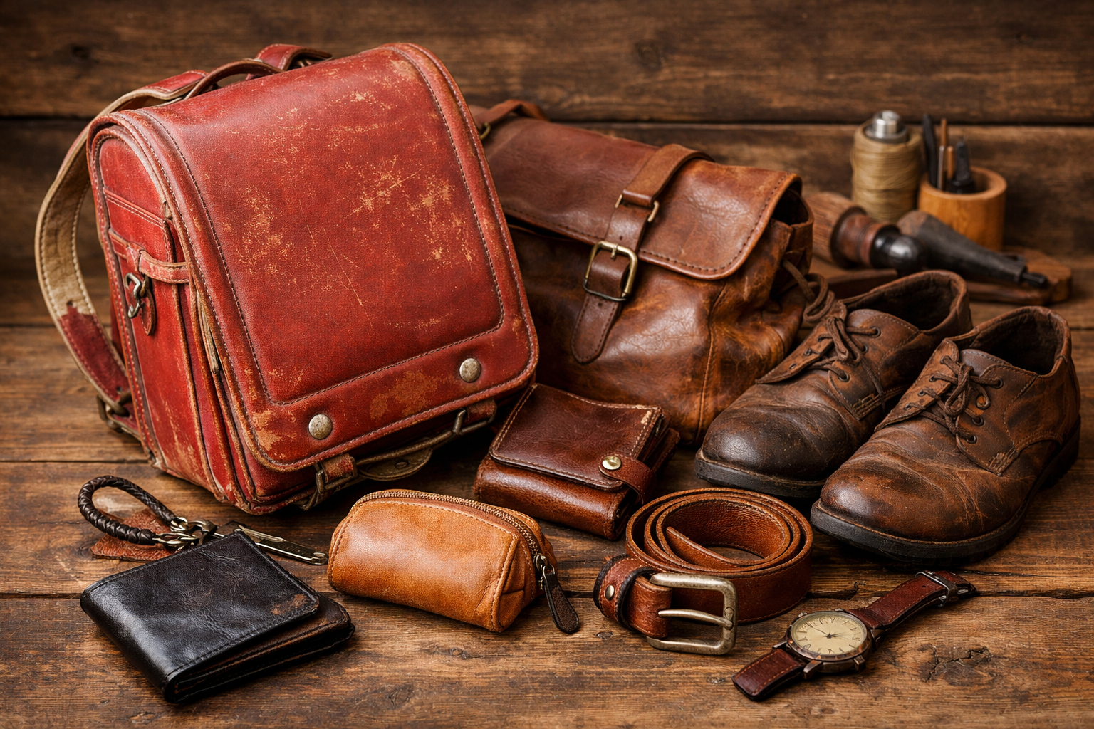 家で眠っているランドセルや不要になったレザー製品を買い取ります。それらレザーの他製品へのリメイクも可能ですので、お気軽にご相談ください。